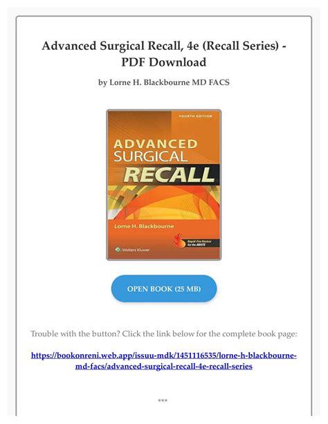 Read Online Download Advanced Surgical Recall 4e Recall Series PDF Kindle Editon By Click Button. Download Advanced Surgical Recall 4e Recall Series PDF it’s easy to recommend a new book category such as Novel, journal, comic, magazin, ect. You see it and you just know that the designer is also an author and understands the challenges involved with having a good book. You can easy klick for detailing book and you can read it online, even you can download it