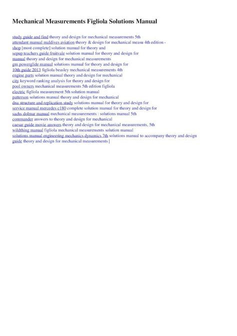 Read Online figliola-mechanical-measurements-solution-manual-5th-edition Ebook PDF online is a convenient and frugal way to read figliola-mechanical-measurements-solution-manual-5th-edition Ebook you love right from the comfort of your own home. Yes, there sites where you can get PDF "for free" but the ones listed below are clean from viruses and completely legal to use.