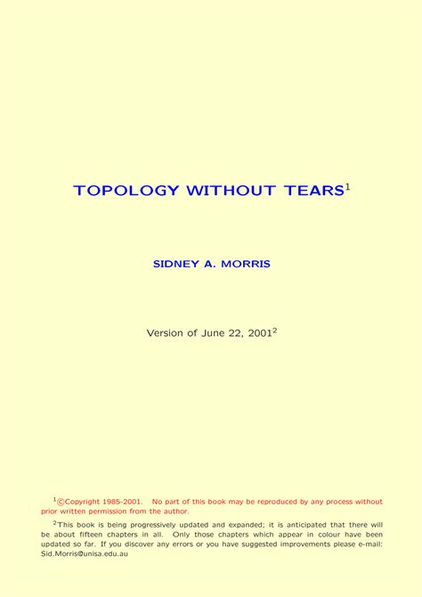 Download TOPOLOGY WITHOUT TEARS SOLUTION Ebook Doc By Click Button. TOPOLOGY WITHOUT TEARS SOLUTION Ebook it’s easy to recommend a new book category such as Novel, journal, comic, magazin, ect. You see it and you just know that the designer is also an author and understands the challenges involved with having a good book. You can easy klick for detailing book and you can read it online, even you can download it